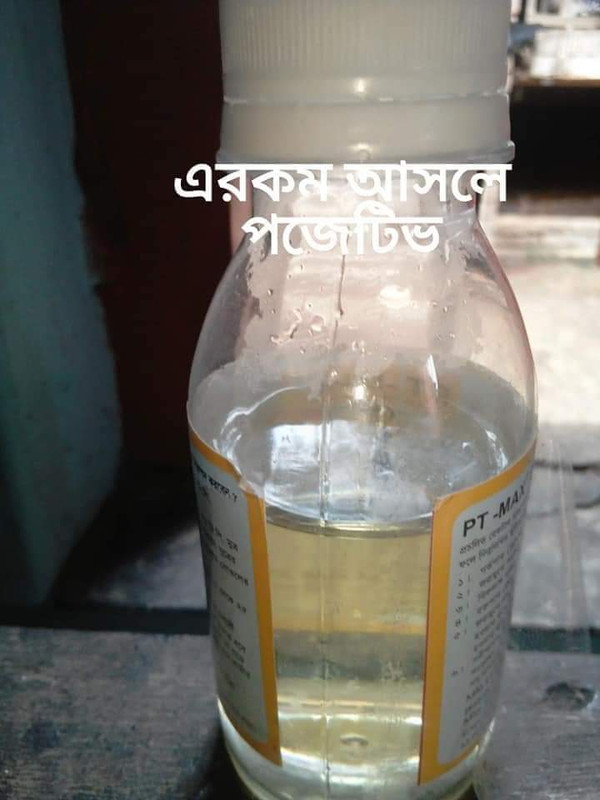 সলিউশন এর কালার পরিবর্তন হয় বা নীচে তলানী পড়ে গাভীর পেটে বাচ্চা নাই।