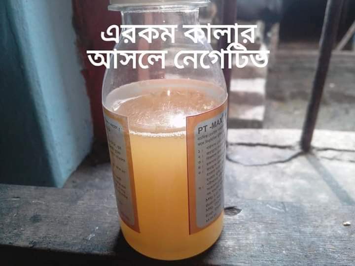 মুএ যোগ করার পর সলিউশন এর কালার পরিবর্তন না হয় বুঝতে হবে গাভীর পেটে বাচ্চা আছে।